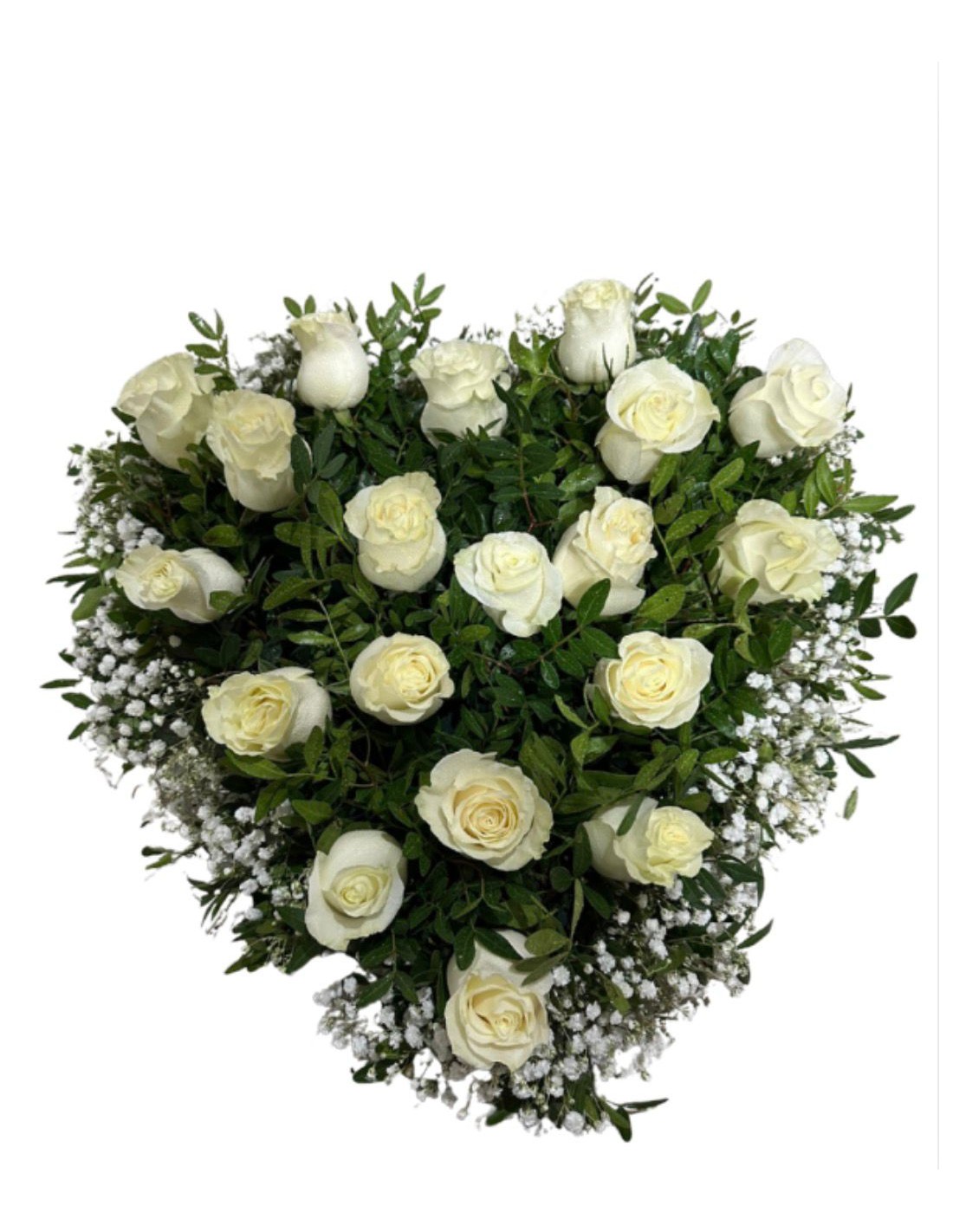 El corazón funerario Amor Infinito está elaborado íntegramente con rosas frescas, símbolo universal del amor eterno, el respeto y el recuerdo imborrable.
